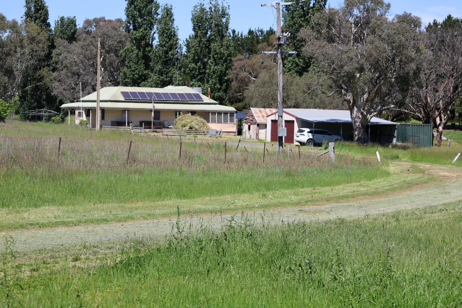 FEATURES: Water is a standout feature, with a spring-fed permanent creek and a network of dams and troughs reticulated across all paddocks. Infrastructure is well set up for efficient management, including a three-stand shearing shed, two-bay garage with skillion, and a four-bedroom, two-bathroom homestead dating back to the 1920s, complete with carport and mains power. The residence offers great potential for modernisation, allowing the new owners to create a comfortable country home that complements the productivity of the land.